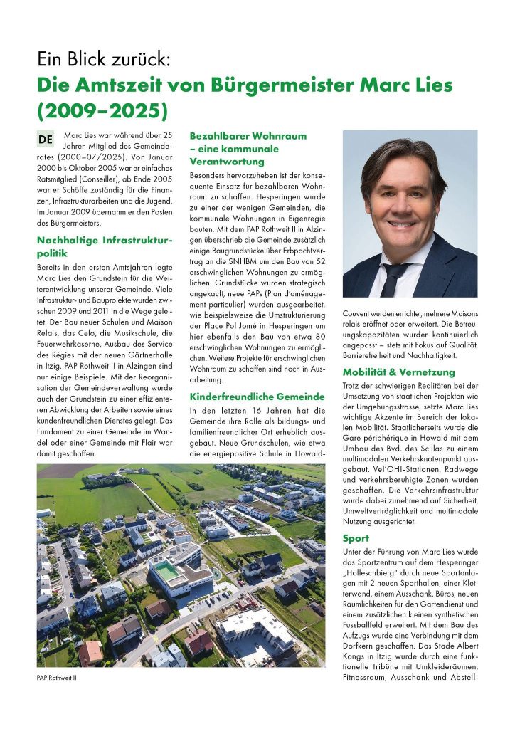 Hesperingen, 02.06.25. Die CSV Hesperingen gibt bekannt, dass Bürgermeister Marc Lies in