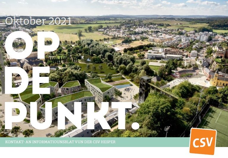 Den Op de Punkt vum Oktober 2021 ass do! Themen an dëser Ausgab: CSV setzt Akzenter an der Mobilité Douce Ons Bëscher an der Gemeng...